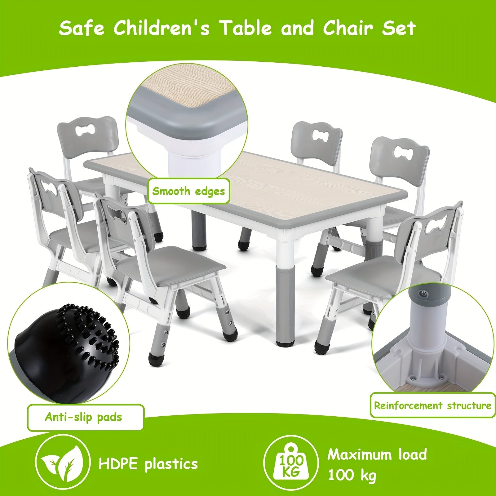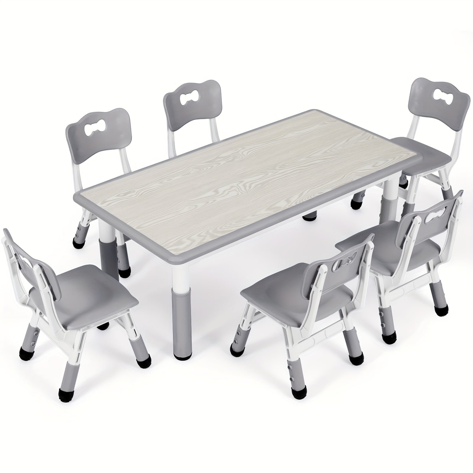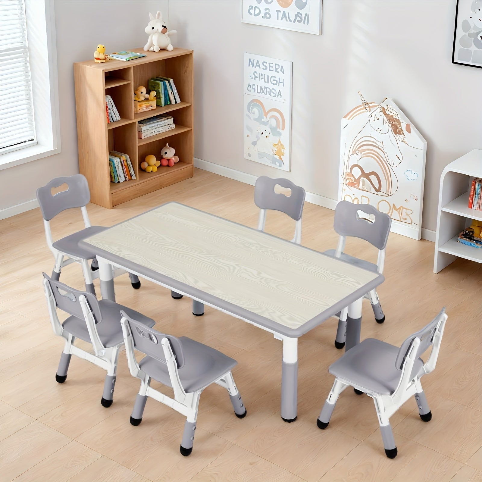 Discover the Modern Kids Table And Six Chairs – a gray plastic set that grows with your child and makes learning, meals, and play time a breeze. Safe, sturdy, and simple to assemble, it’s the ultimate all-in-one space for kids aged 2 to 10.