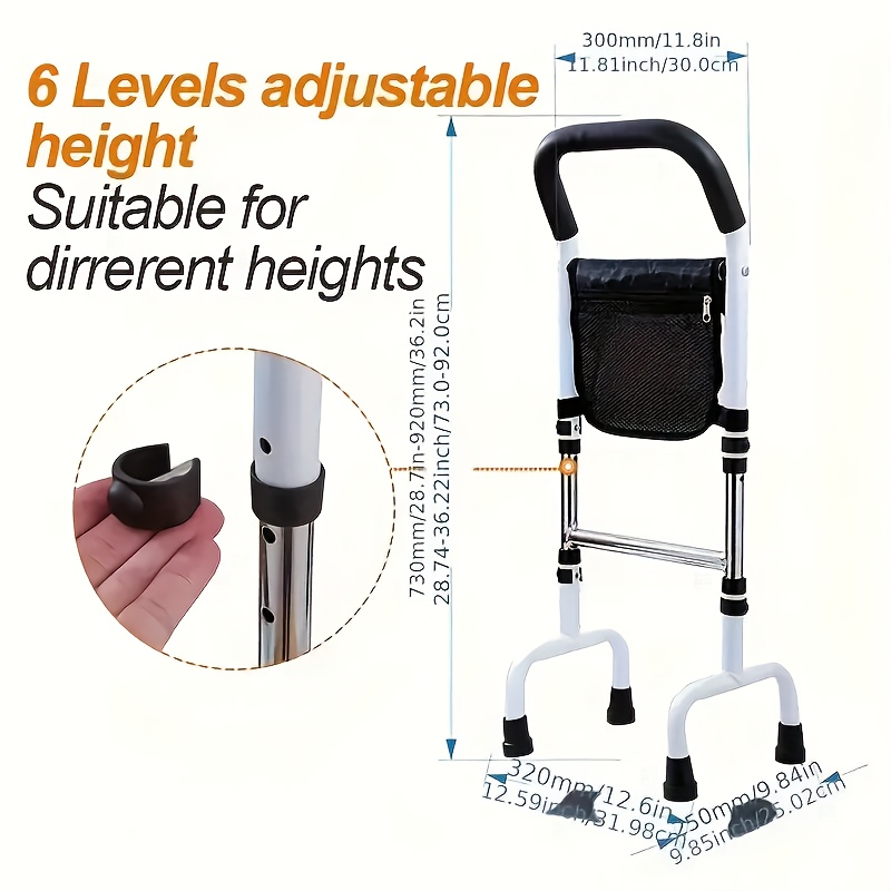 12.4 X 16.54 X 4.92 Inches, 1pc Koociri Easy Bed Rail - Adjustable Walking Aid, Strong Coated Steel Frame, Multiple Grips For Optimal Support, Suitable For Elderly/Adults, Home Bed Use