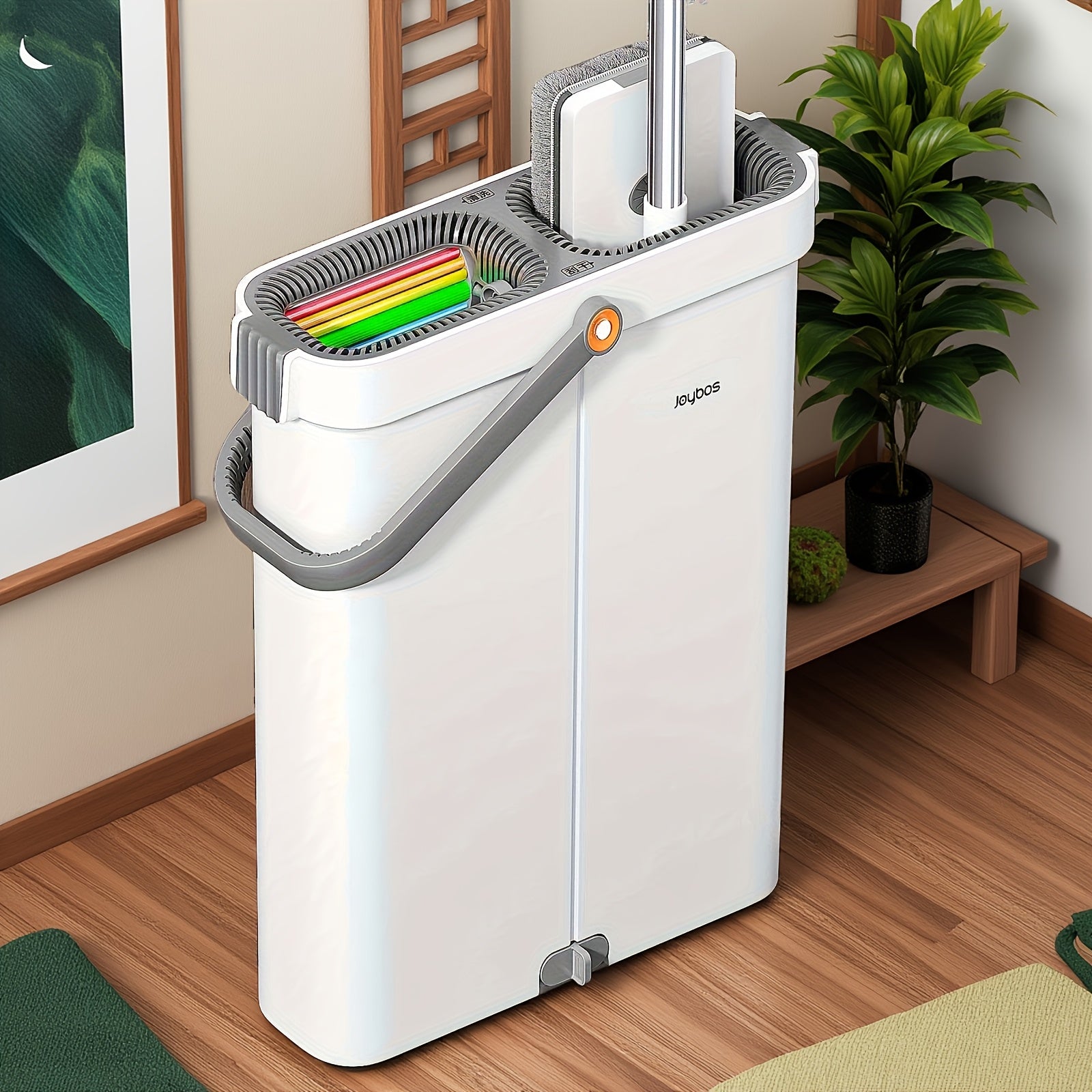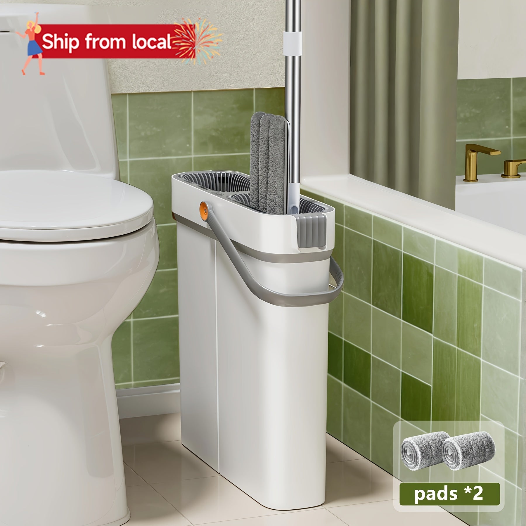 12.99inch/15.75inch Hand-Free Mop And Wash Bucket Set with 2 Washable Reusable Microfiber Cloths, Machine Washable Matching Cloths, Wet And Dry Floor Dust Mops, Floor Cleaning Systems, Bucket Sets, Cleaning Supplies, Cleaning