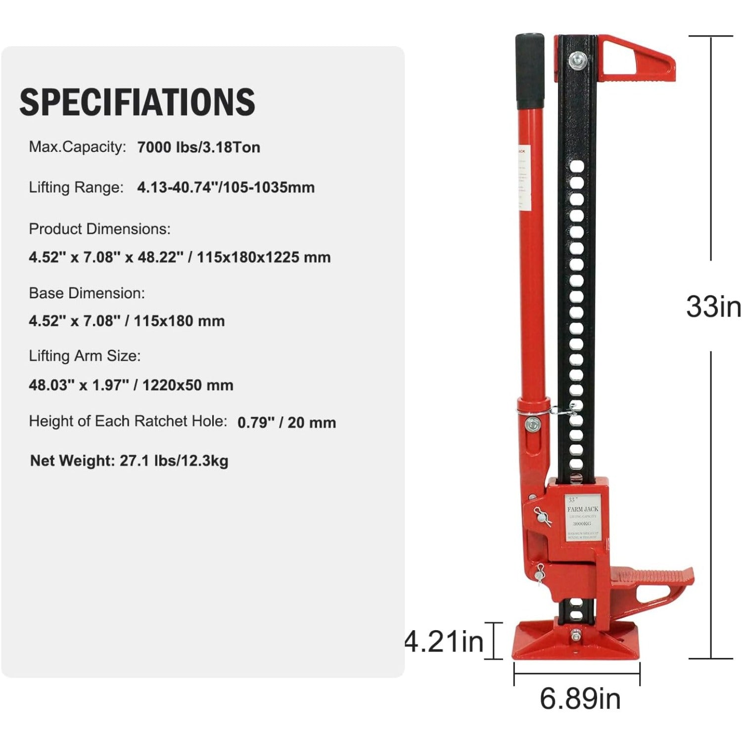 The ratcheting mechanism delivers controlled, step-by-step lifting and lowering, so you can raise your vehicle to the exact height you need with confidence. Its stainless steel construction resists corrosion and stands up to demanding environments, from muddy fieldwork to rugged trails, making this jack a reliable companion wherever you work.