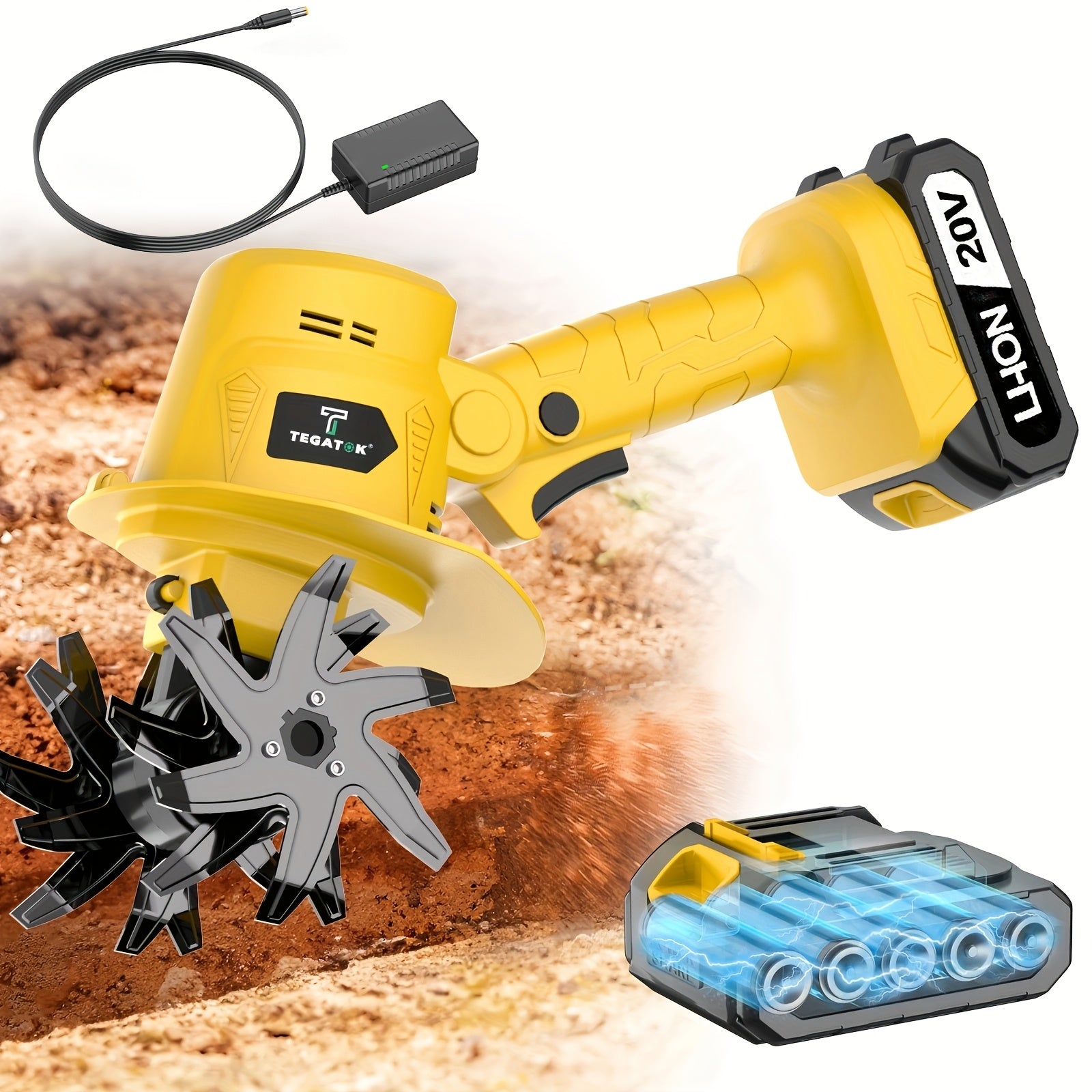 Meet the 20V Cordless Tiller Cultivator from TEGATOK—a portable, handheld garden workhorse designed to turn compact, hard-packed soil into loose, ready-to-plant earth in minutes. With a 9-inch working width, it slices through beds, pots, and raised planters efficiently, so you spend less time tilling and more time growing.