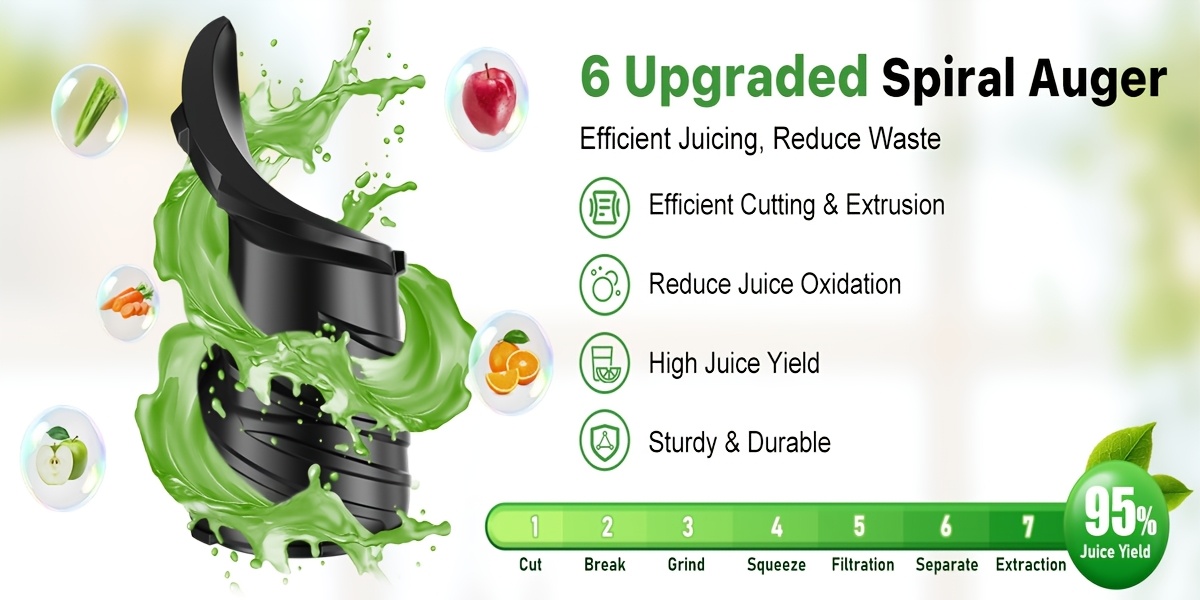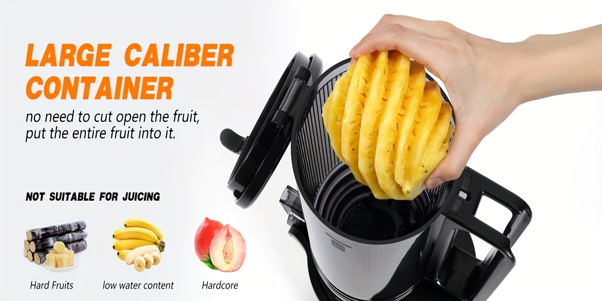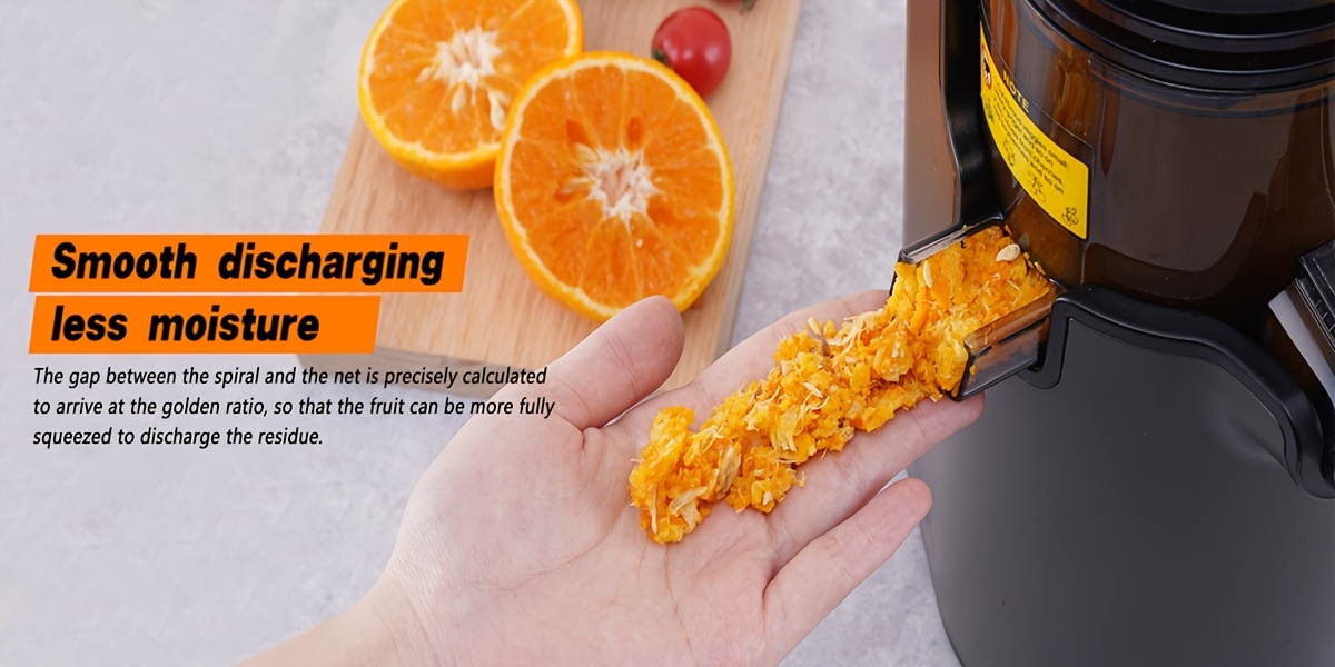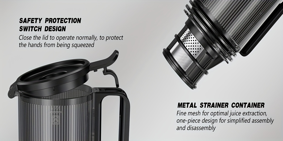 Our slow juicer features a wide feeding tube and a blade-free design that halts operation when the lid is lifted. This enhances juicing performance while prioritizing safety.