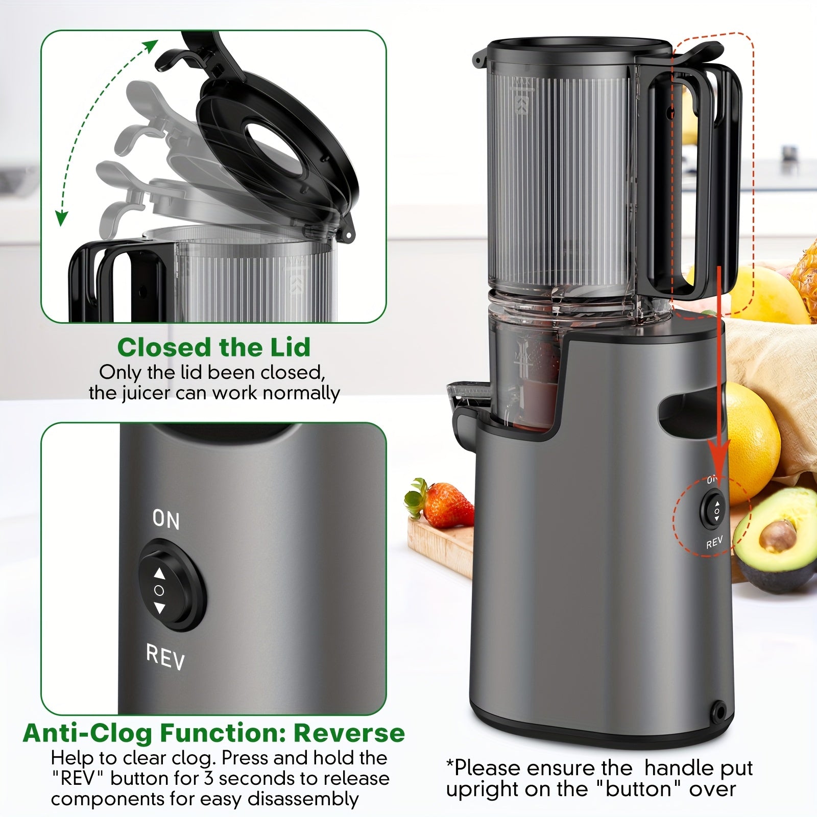 [350w Cold Press Juicer] 350w Cold Press Juicer Masticating Juicer | 4.7 Wide Feed Chute, High Juice Yield, Easy To Clean | Ideal For Whole Fruits And Vegetables, A Must-Have For Your Kitchen, Perfect Gift Idea
