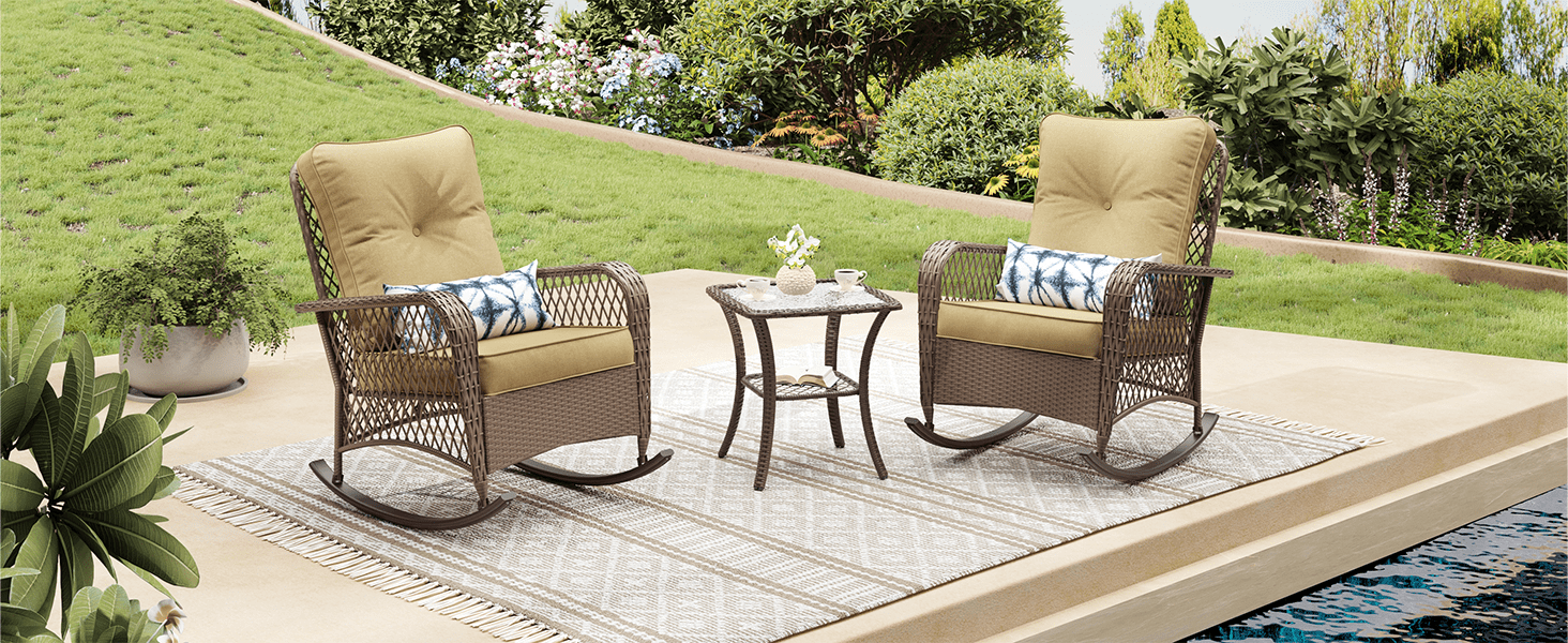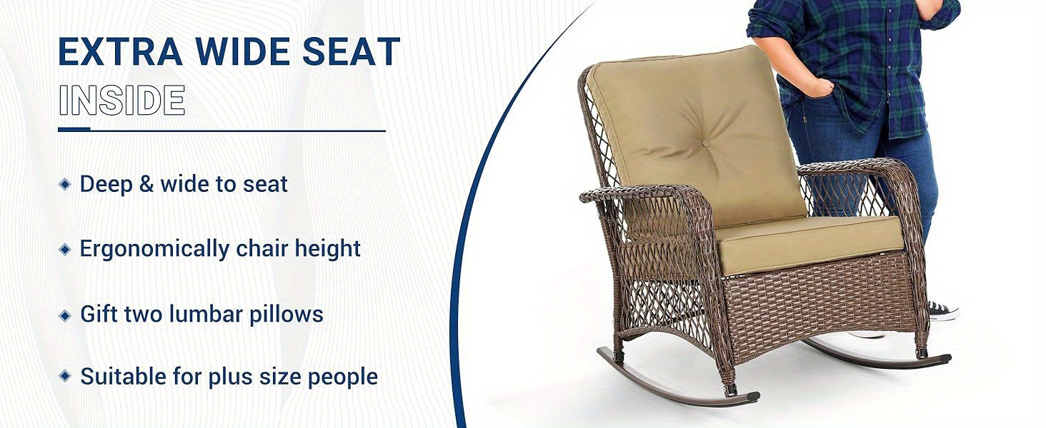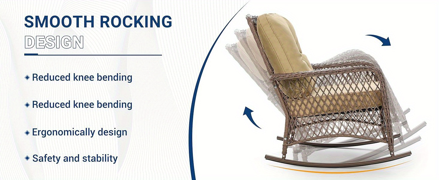 3pcs Patio Set Rocking, Rattan Outdoor Rocking Patio Bistro Set With 2 Rockers And 1 Side Table With 4'Thick Cushions For Backyard, Porch, Balcony, Poolside, And 1piece Of Chair Can Choose