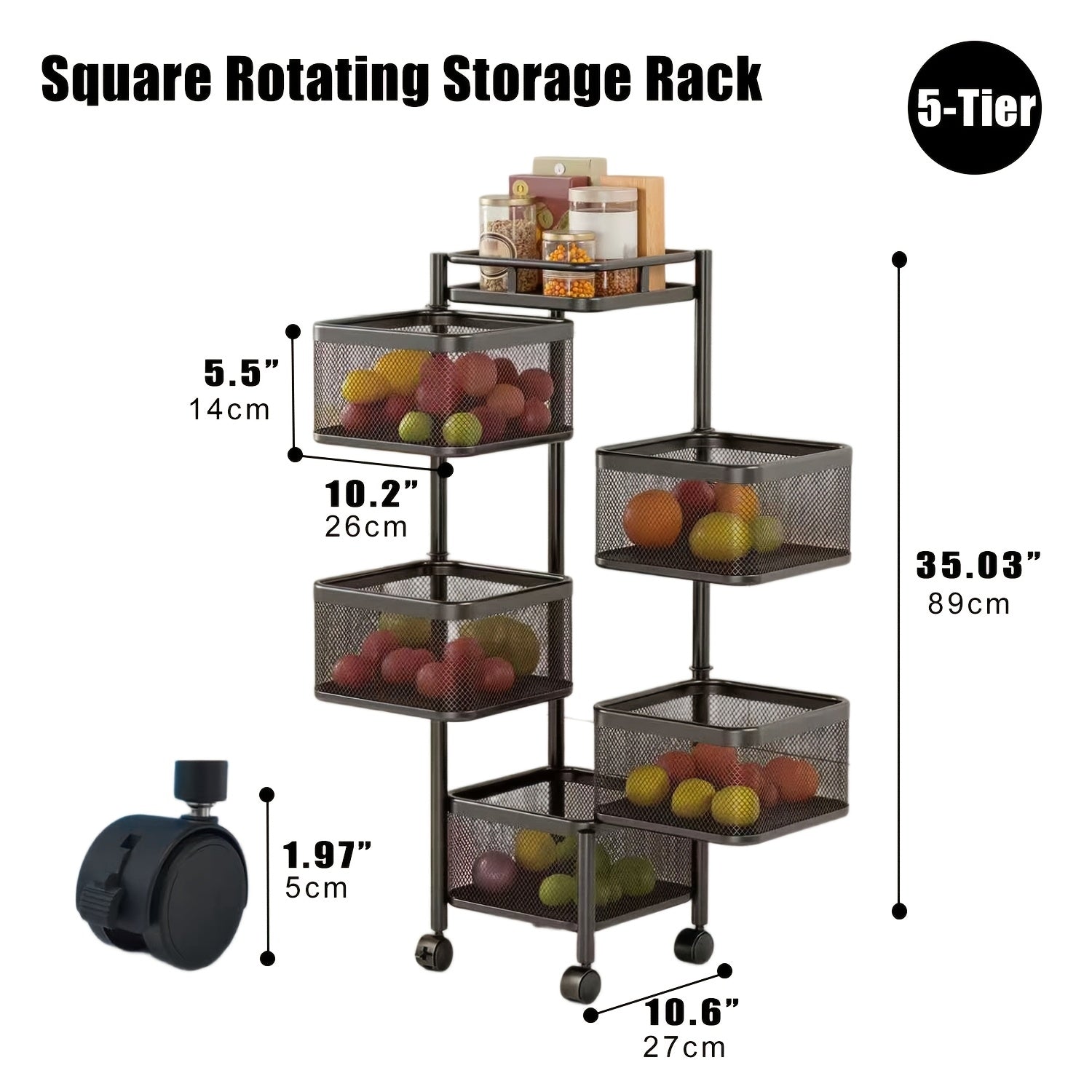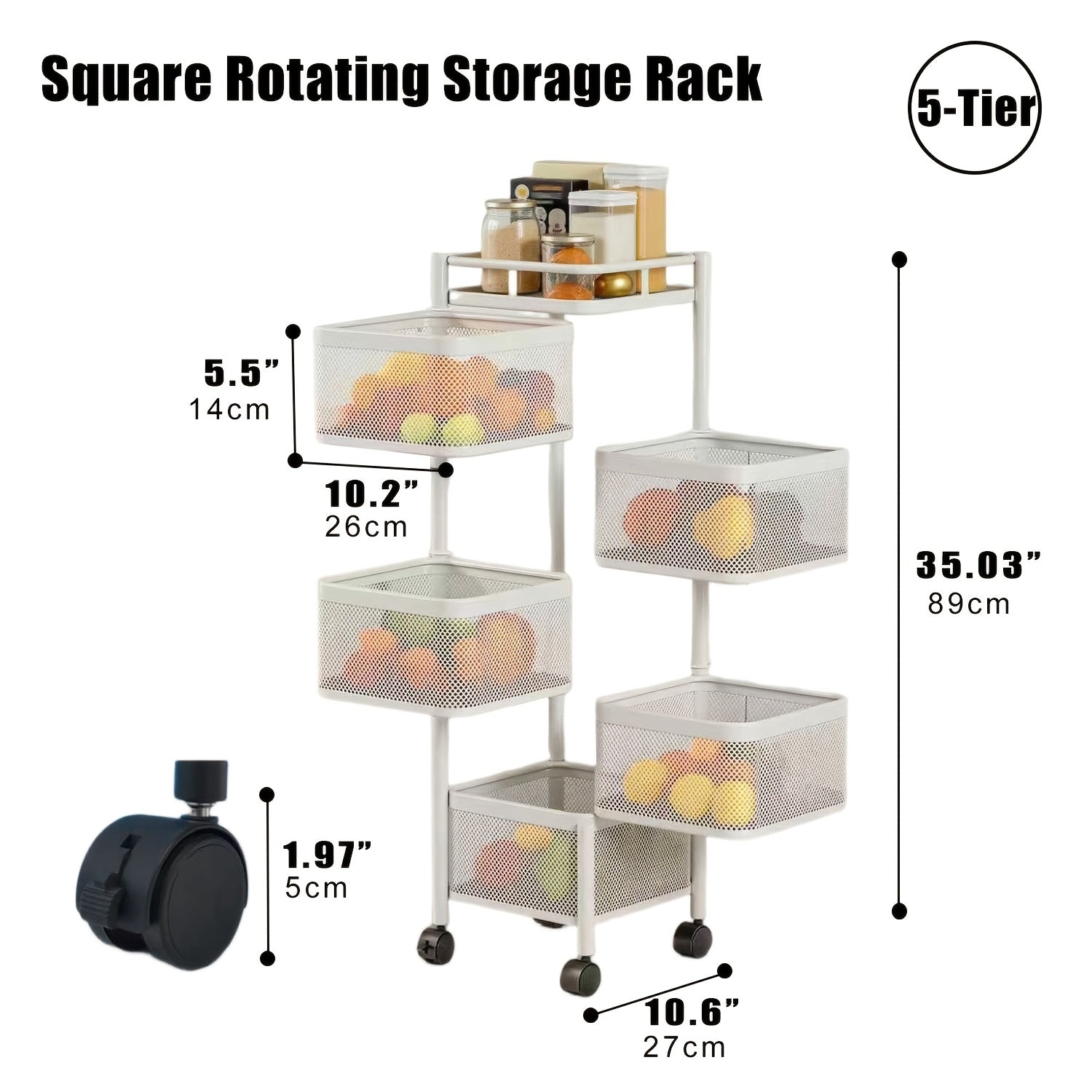 5 Tier Rotating Storage Shelf With Rolling Baskets Metal Mobile Bookcase Office