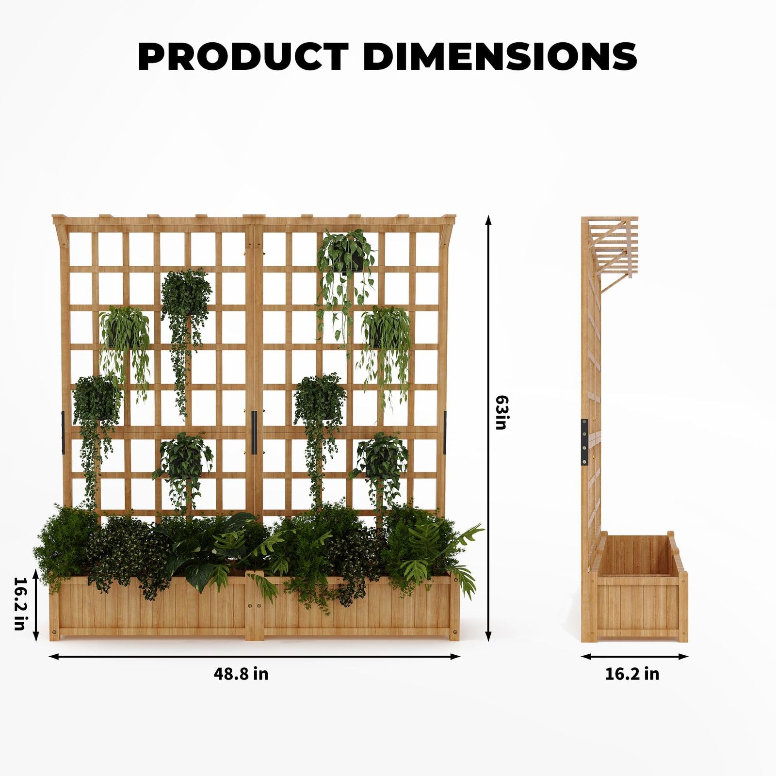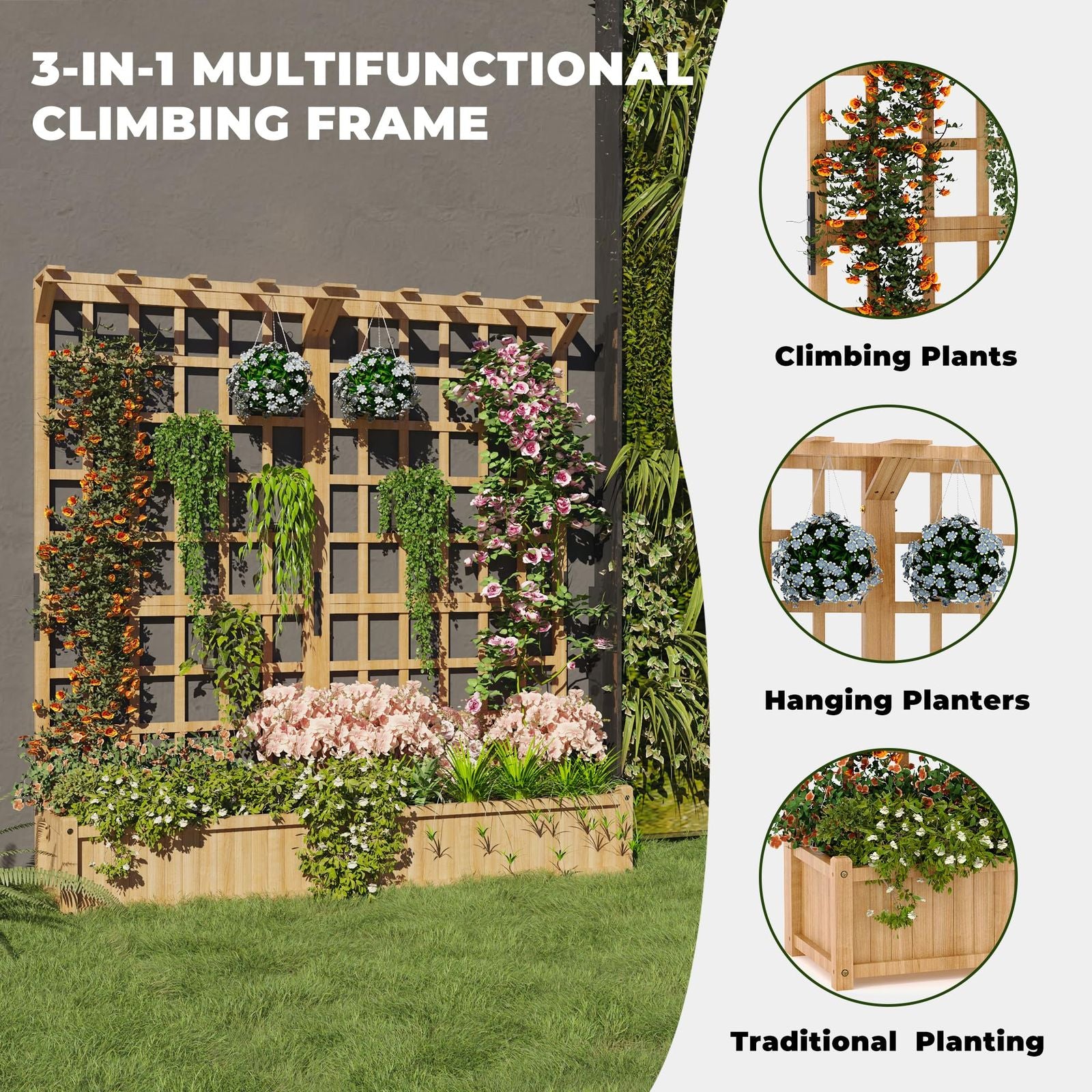 - Vertical gardening made easy—the built-in lattice trellis unlocks vertical space, supports heavy vines, and encourages healthier yields by improving air circulation around plants.
