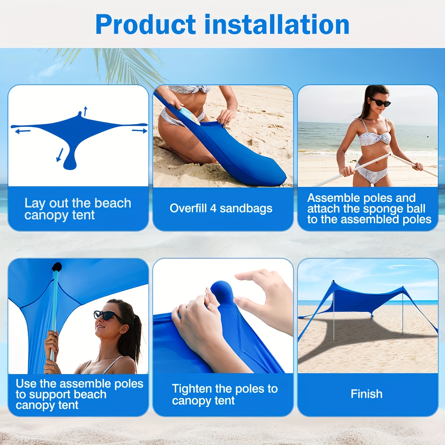 Ideal Beach Canopy:Designed with 200*210*150cm size,this shade sail is capable to hold up to 4-6 people,ensuring you a clean and well sun-protected outdoor experience. Perfect outdoor shade sail for you,your friends,family in beach leisure time.