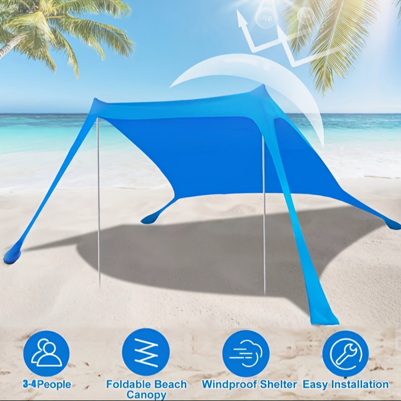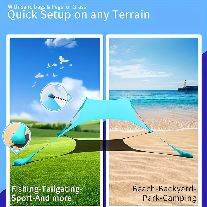 Beach Tent Sun Shelter, Portable Sunshade Canopy with Sandbags for 4-6 Adults, Easy Setup, for Family Outdoor Camping Fishing Backyard Picnics