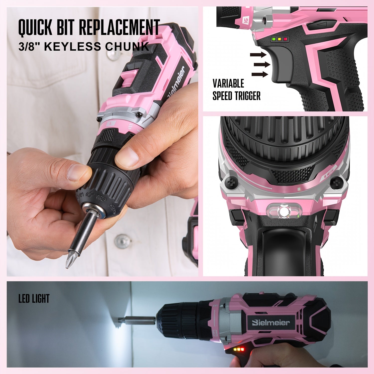 Bielmeier 236pcs Pink Tool Kit 20V Cordless Drill For Women