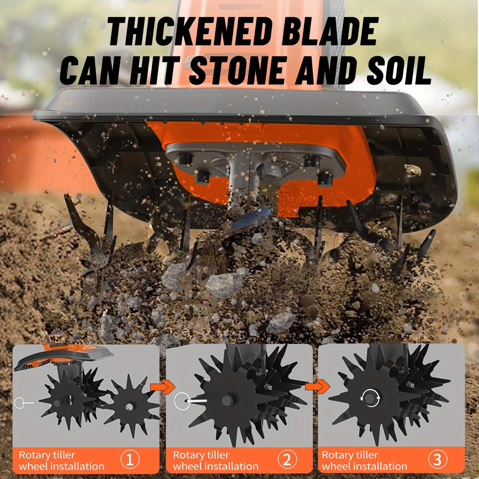 - 9-inch rotary tilling blade—a compact, efficient blade size that’s perfect for narrow rows, edging paths, and cultivating soil in tight spaces where larger tillers can’t reach.
