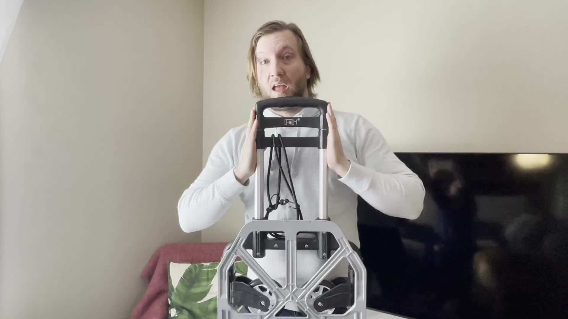· Convenient&Easy Usage: Telescoping handle extends from 24 to 39 inches, with the push of a button and lift up on the handle. And comes with bungee cord and lightweight,there is no problem maneuvering it and safely bringing in boxes,luggage, groceries etc.