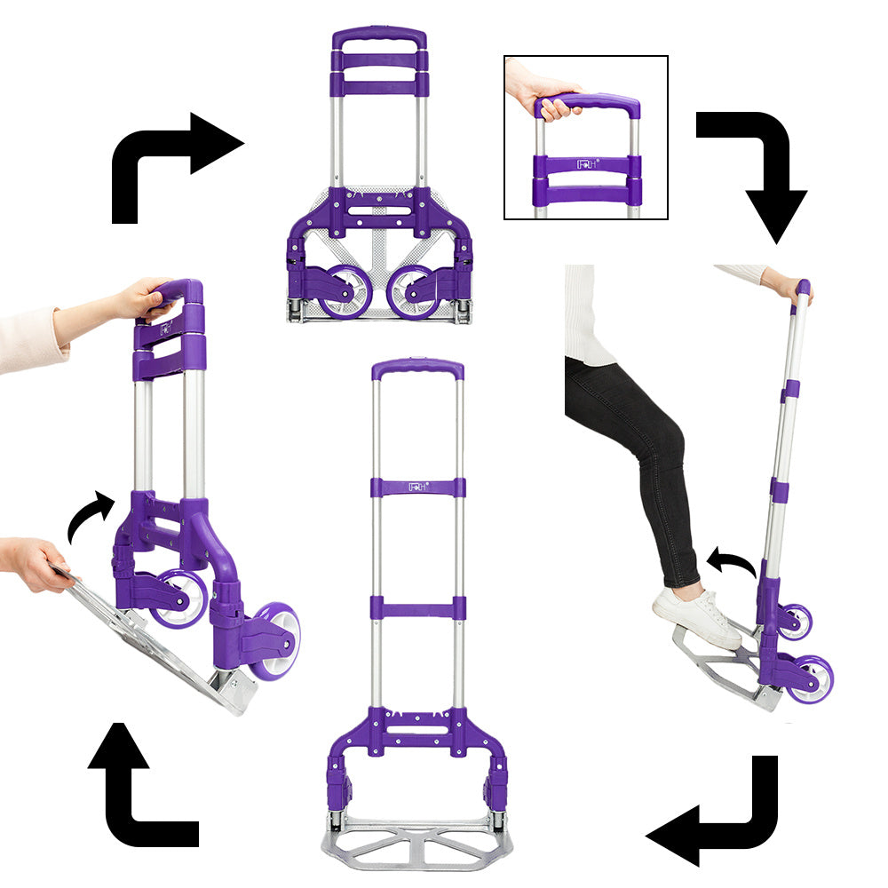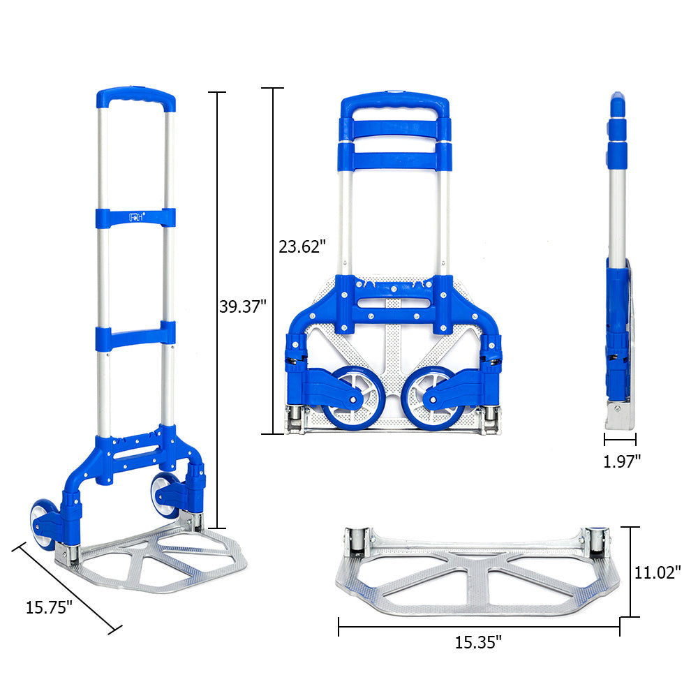 Folding Hand Truck Aluminum Portable Folding Hand Cart 165lbs Capacity Hand Cart and Dolly for Home, Auto, Office, Travel Use