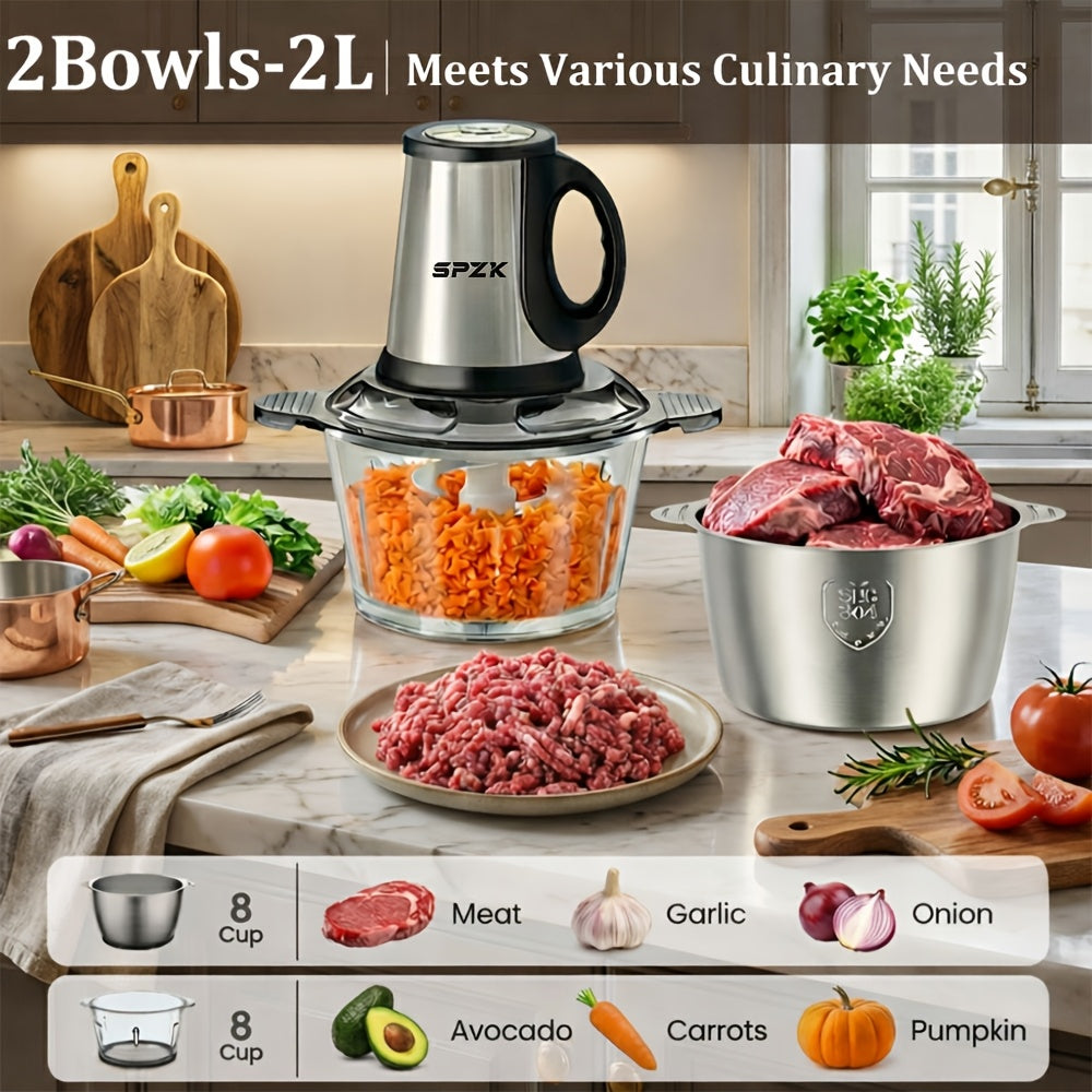 Meet the SPZTJK Stainless Steel Electric Food Chopper and Meat Grinder—the robust, all‑in‑one prep station your kitchen has been missing. Built with 304L stainless steel and engineered for dependable performance, this device turns bulky chopping tasks into swift, controlled motions. With a 110V power supply and a powerful 3000 RPM motor, it handles meat, vegetables, nuts, and more with consistent results, every time.