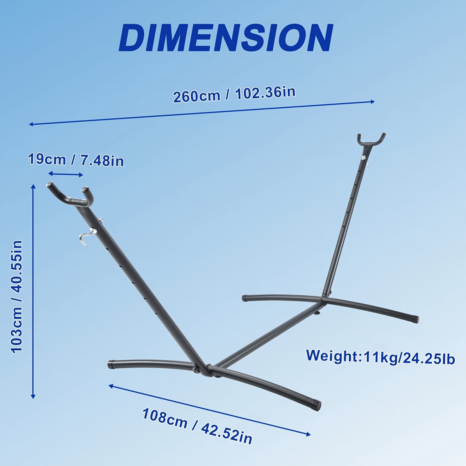 - Thoughtful dimensions for versatile setups: 102 inches in length with a top width of 7.5 inches and a bottom width of 42.52 inches, standing 40.55 inches tall to suit different hammock styles and user heights.