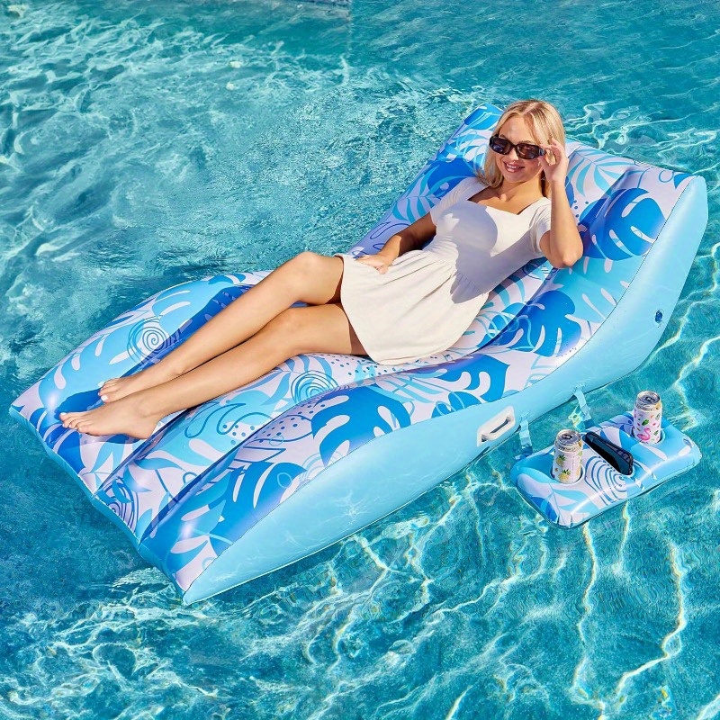 JOYFY Inflatable Pool Floats Adult-Extreme Comfort Pool Lounge Chair With Detachable Cup Holder, Heavy Duty Lounger Floating Chair Floaties Raft Water Floaty Blow Up Recliner Lake Tanning Float, Suitable For Summer Water Part