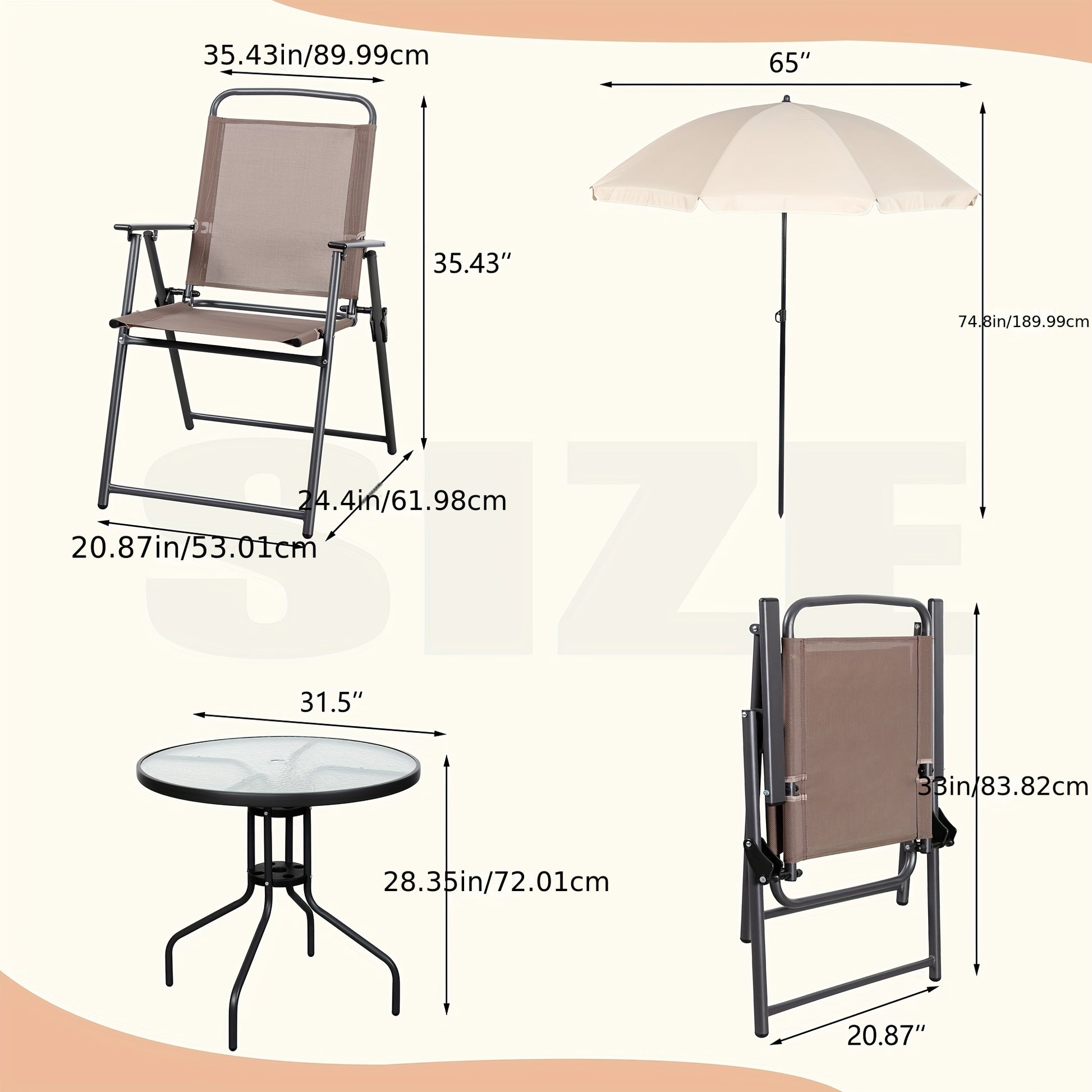 - Compact footprint and fold-away capability make this set perfect for apartments, patios, balconies, and sunrooms where square footage matters.