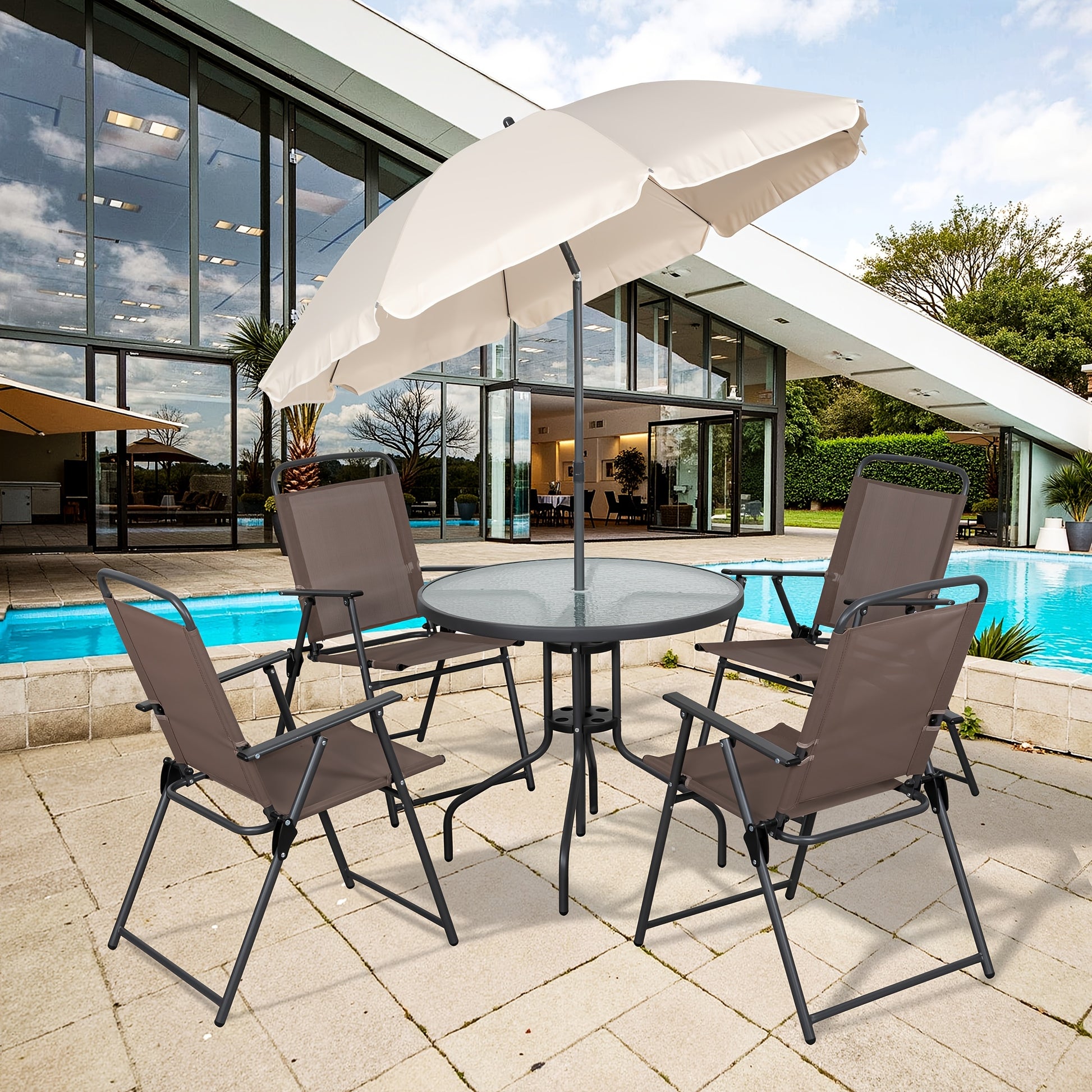 - Pieces: 6-piece folding patio dining set (table + four chairs)